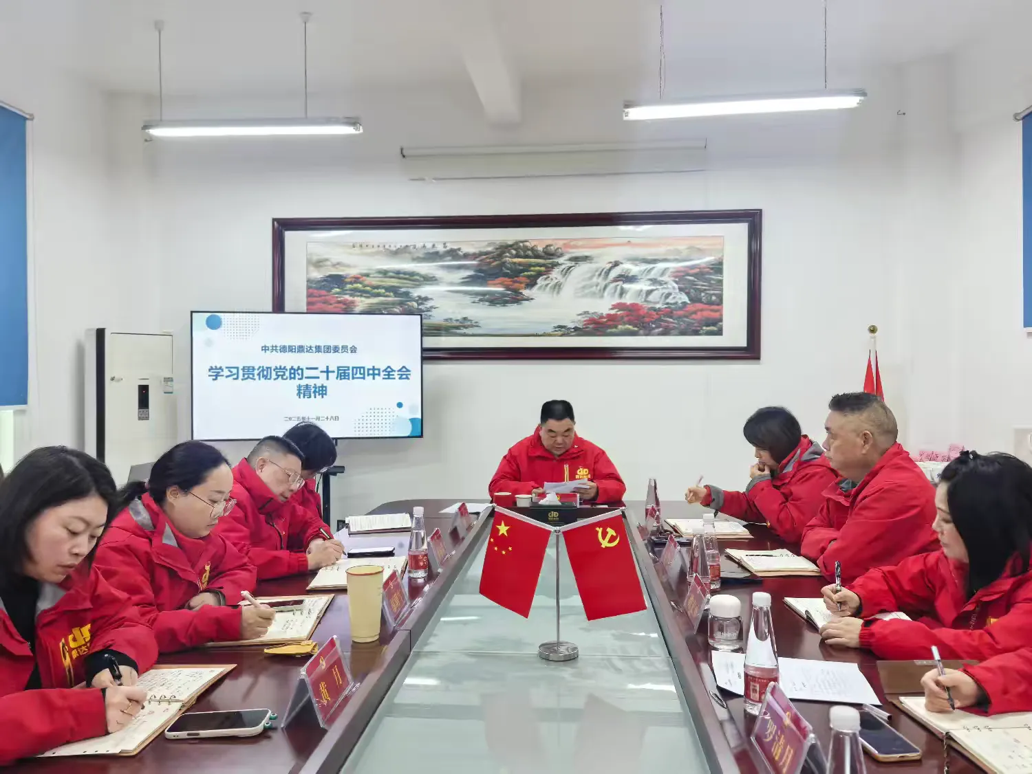 11月28日,德阳鼎达集团党委在集团二楼会议室召开第三十七次党委扩大会议,党委书记尚庆荣主持会议并作专题部署。会议聚焦党支部换届选举成果巩固、二十届四中全会精神学习贯彻及集团“十五五”发展战略对接三大核心议题,以党建领航企业高质量发展新征程。